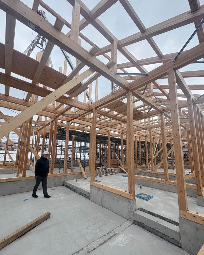 今回は、木構造システムという「温もりのある大空間の実現」をコンセプトにした、大分発祥の”構造を見せる”工法を用いての建築となります。先日閉幕した大阪万博の大屋根リングに近い、日本の伝統と現代技術を融合させた木造建築工法です。